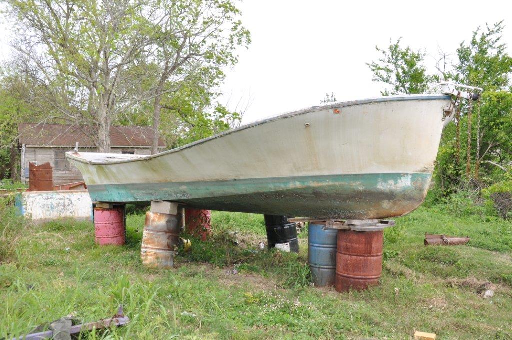 Back in the car, Charles begged to continue down the road as he wasn’t ready to go home yet, so we kept driving to see what else we could find. On our way to the museum, we had passed an old plantation, still standing but fighting a losing battle with the elements and weeds threatening to suck it back into the earth. Now, on our left, an old boat was lifted on barrels, preparing for an overhaul from its owner.